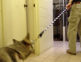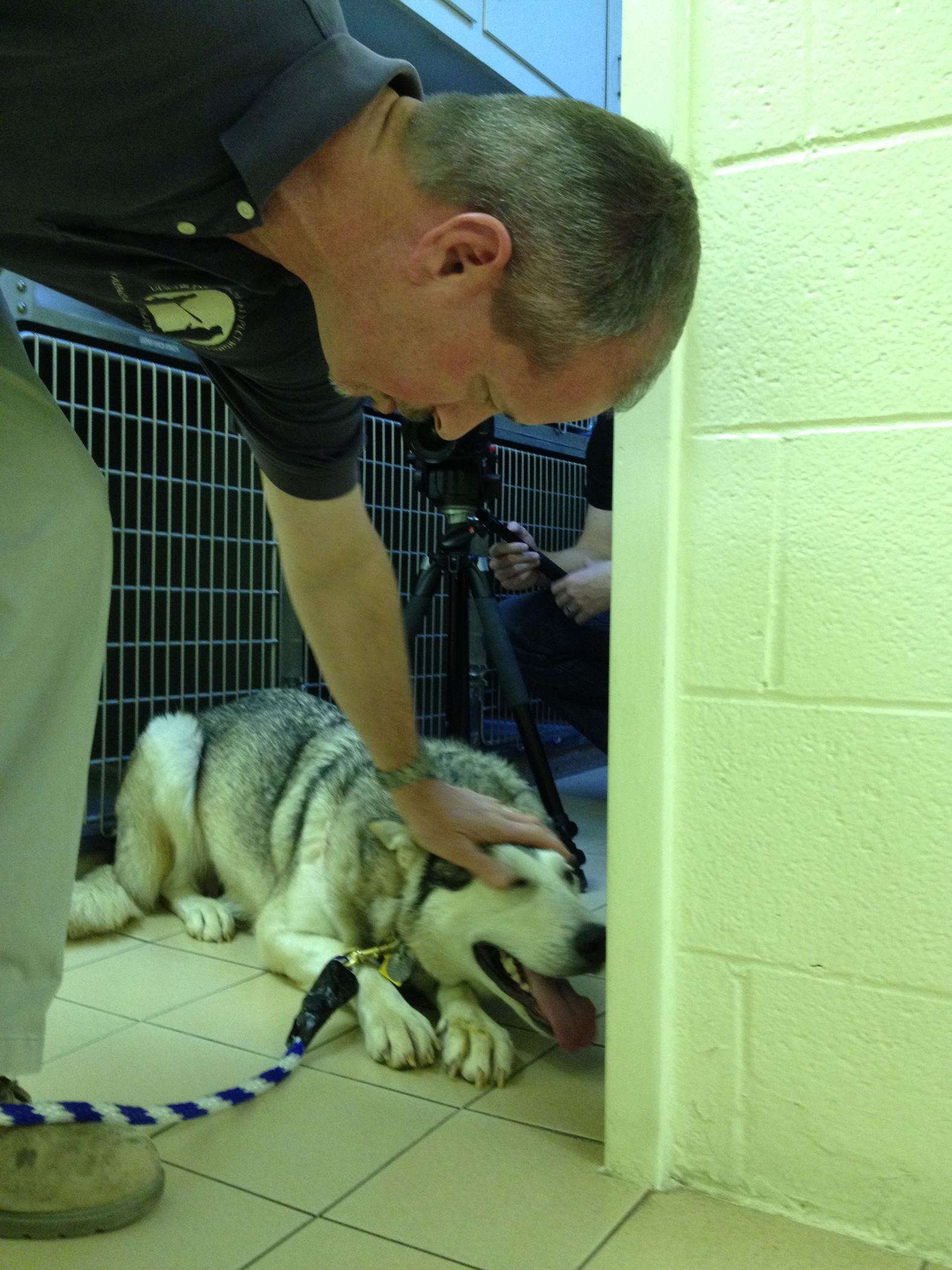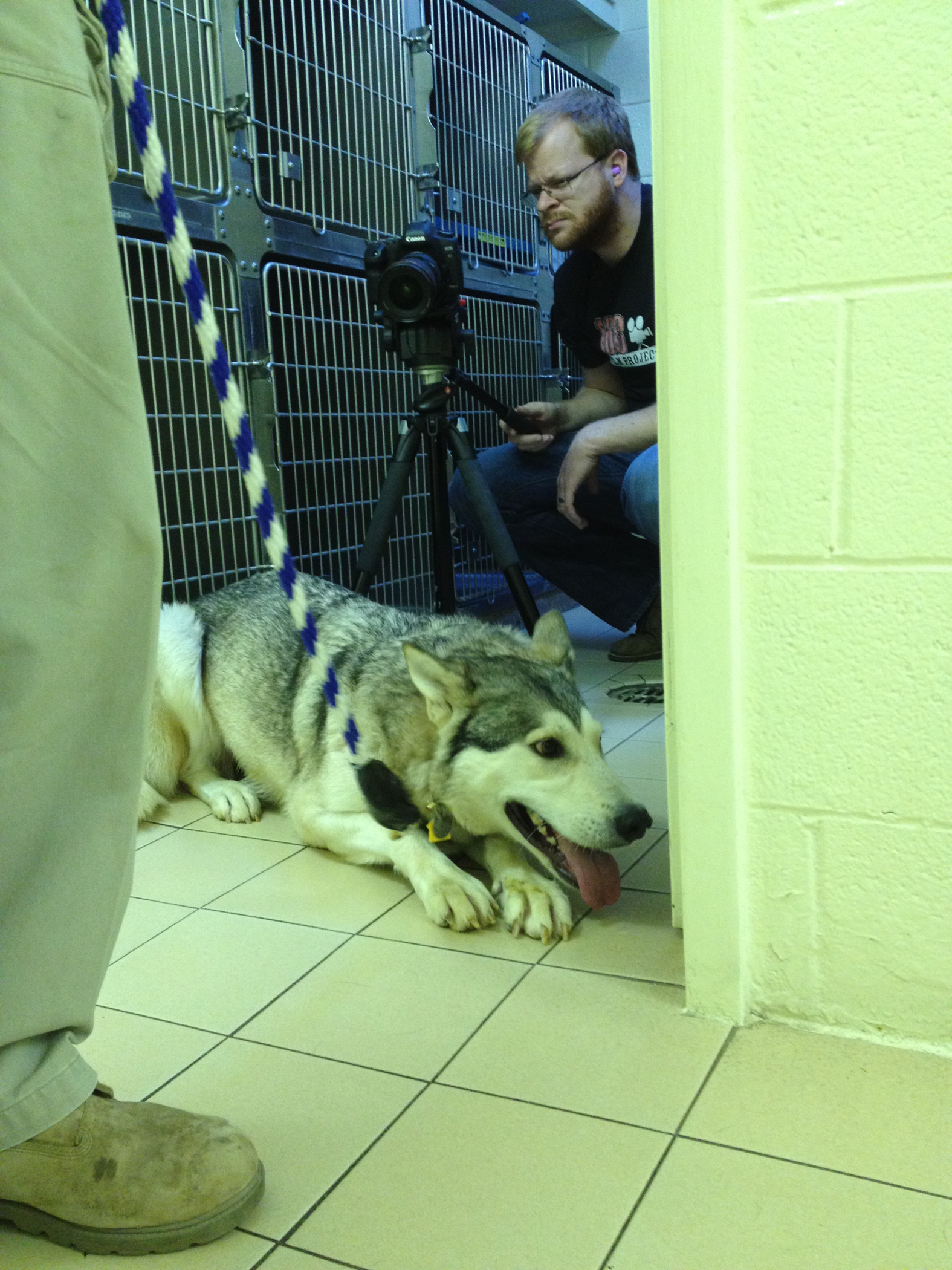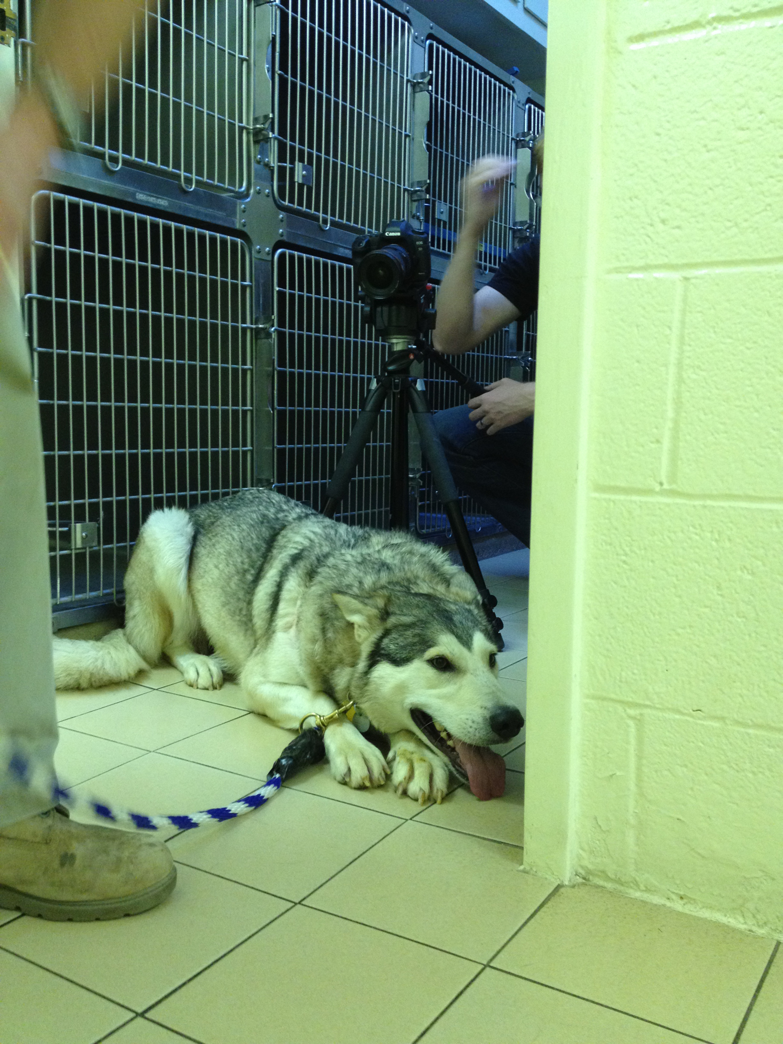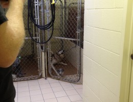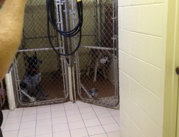Nelson advised us to be quiet while sitting in the kennel with the dog, but c’mon, after about 30 minutes, don’t you think the dog wants to know about my day? I really want to ask the dog how she managed to climb to the ceiling of the kennel and to pull her leash down and then shred it to pieces.