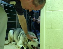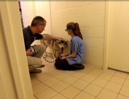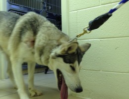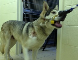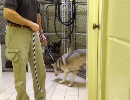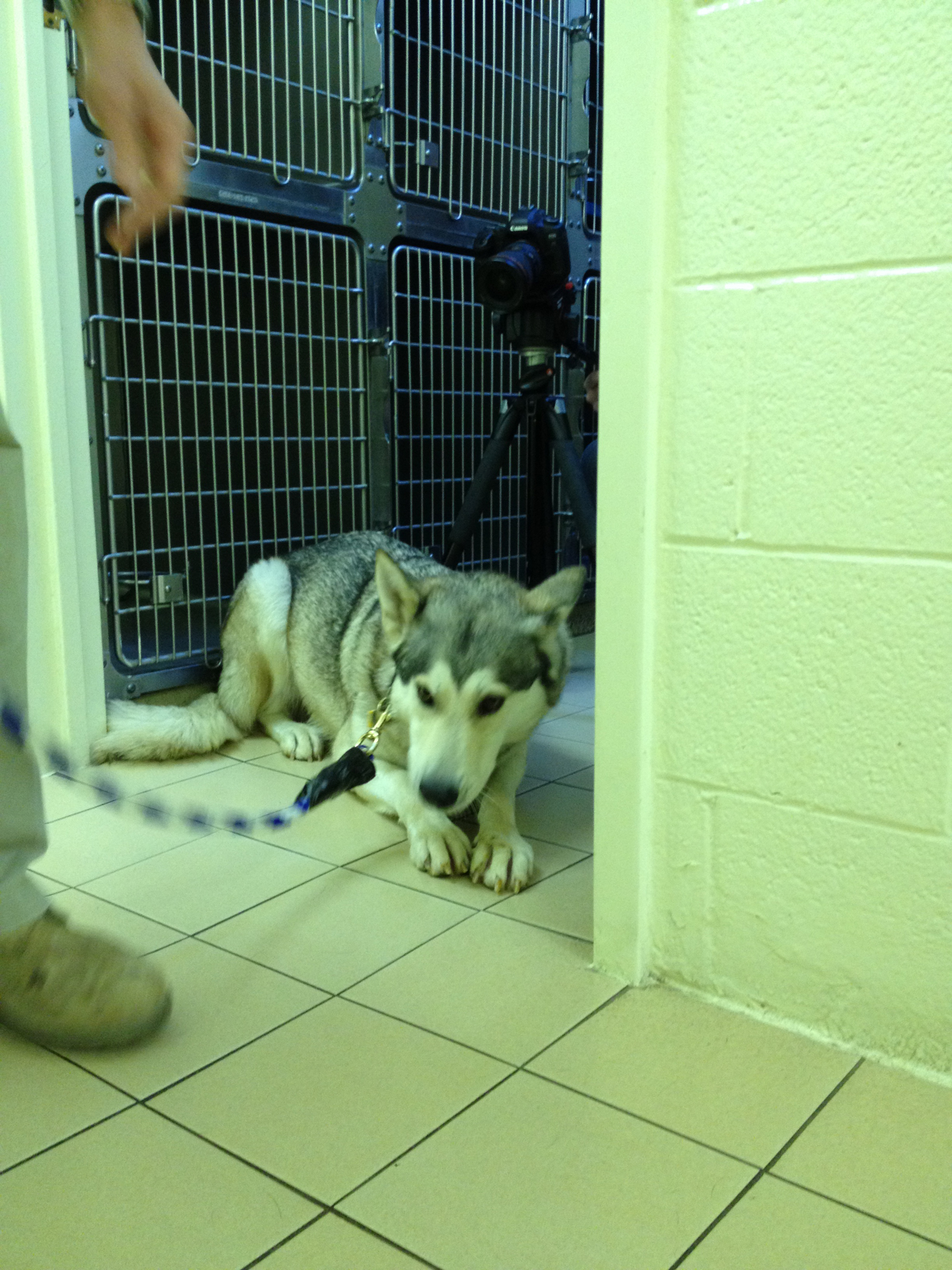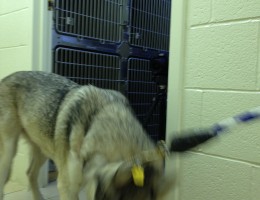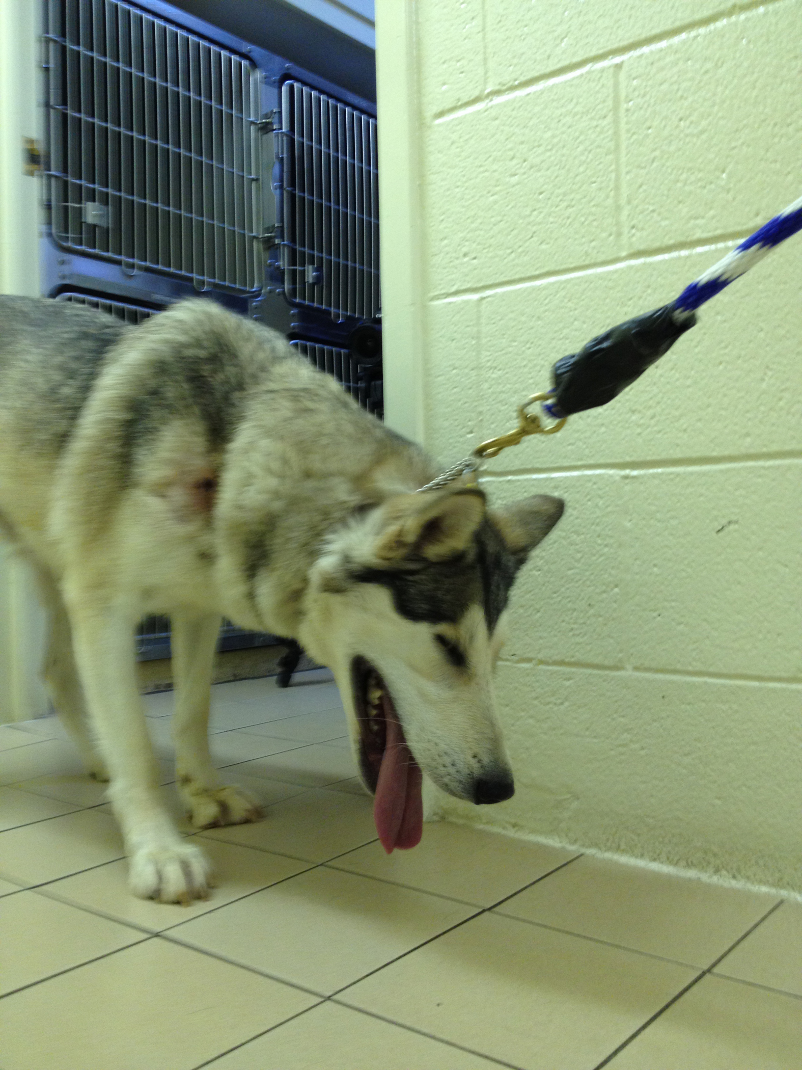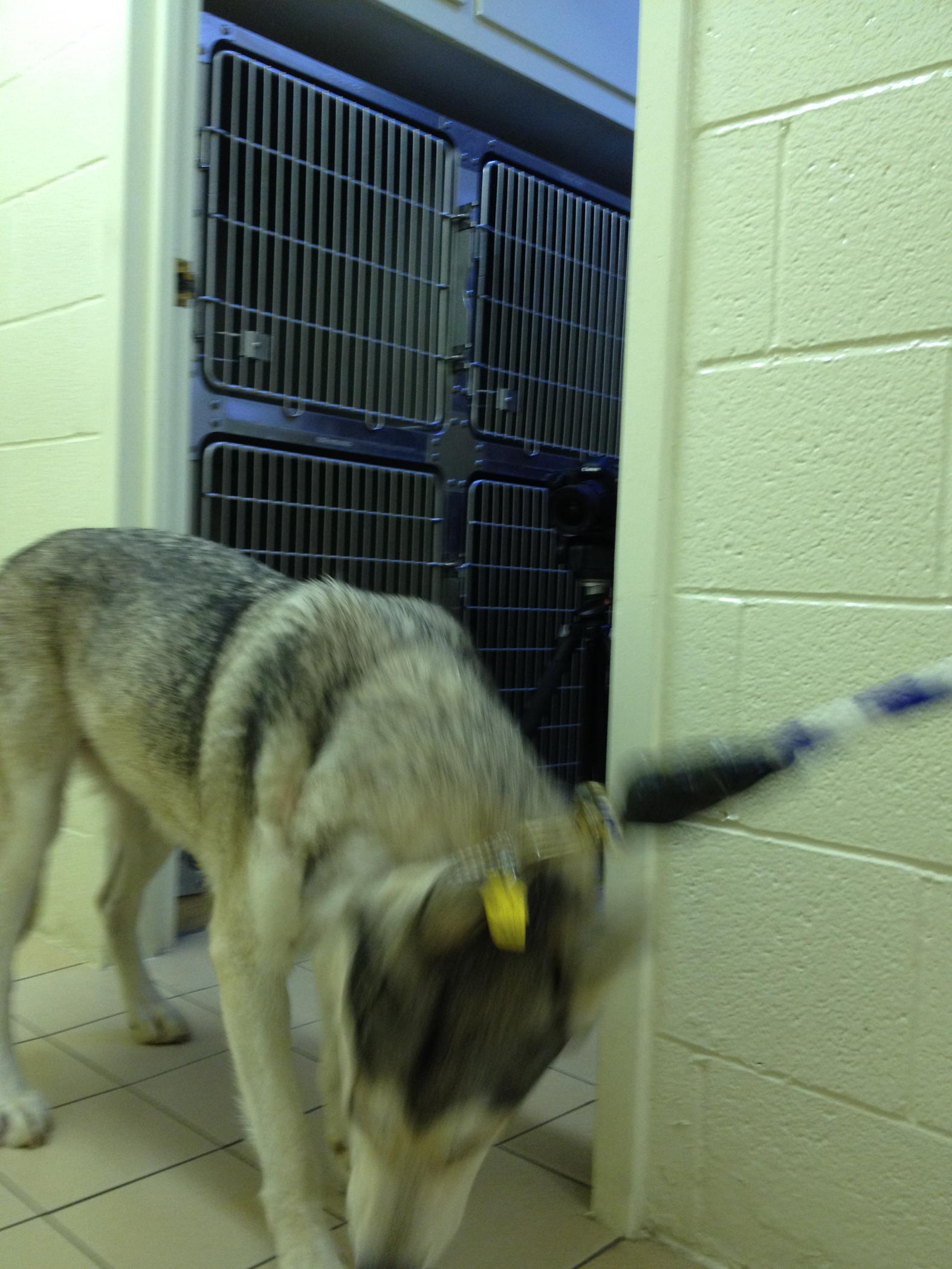 Now that we could reliably leash her, it was time to walk her out of the run. We took her out for the first time on Thanksgiving day. We didn’t go far. She went straight from her run to the emergency back door of the clinic which was about 20 feet away. Smart girl. We eased her back down the row towards her run and as soon as she had opportunity, she bolted back into her run.