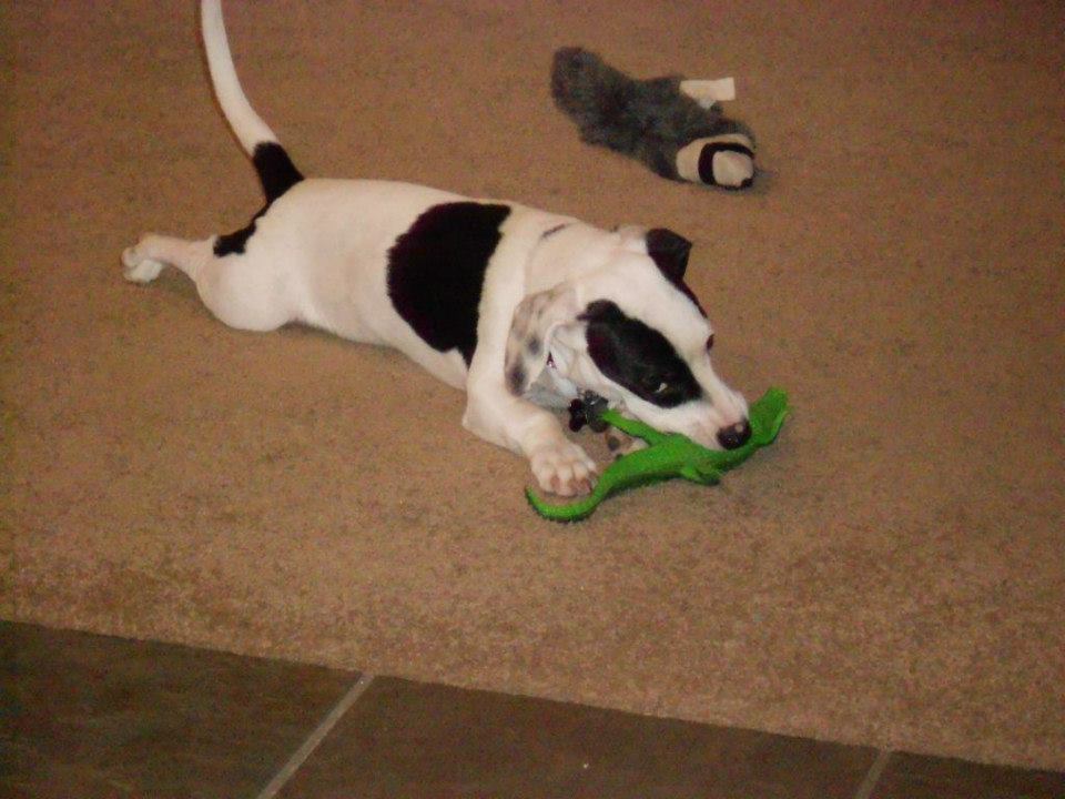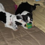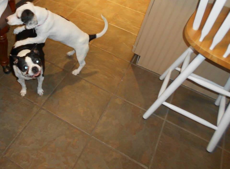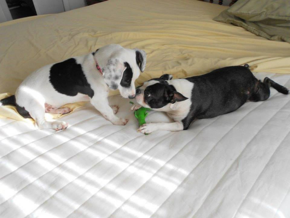 On one of her dates, Angel was a perfect match for the household toddler, but not for the family’s older dog that had a bad back. The older dog was not happy about Angel’s enthusiasm, but as you can see here, Puglsy is perfectly happy playing with the exuberant Angel.