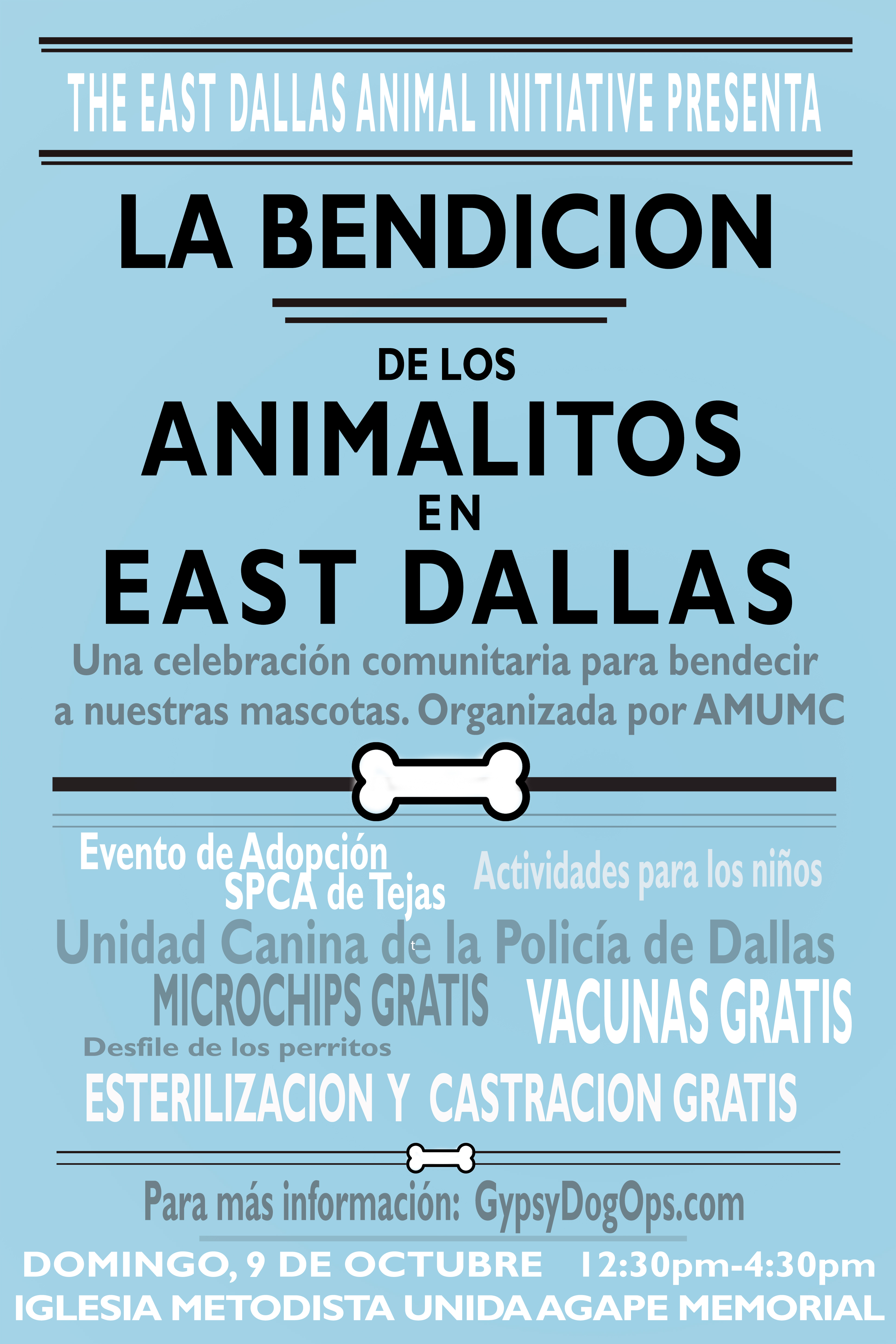 Brought to you by the East Dallas Animal Initiative, Agape Memorial United Methodist Church, the SPCA of Texas, Gypsy Dog Ops, and YOUR NAME HERE (our sponsor list is growing daily) our event is a community wide blessing of the animals designed to promote animal welfare and responsible pet ownership throughout our East Dallas communities.
