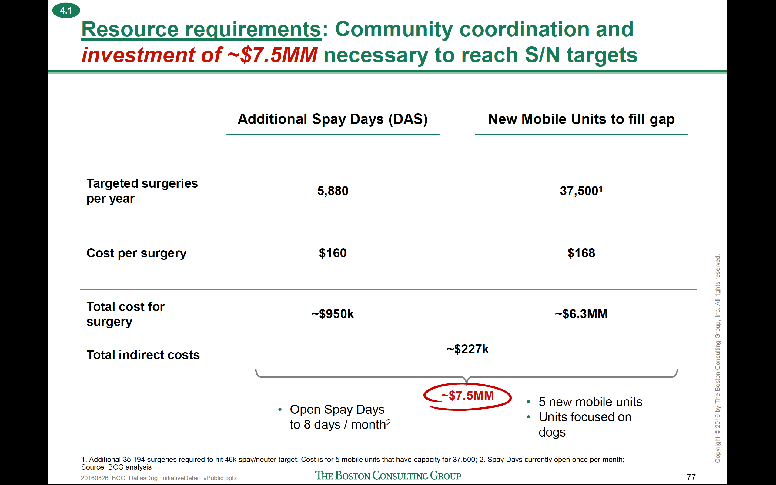 Add in this next disappointing component and we’re really not optimistic that the City truly understands or is motivated to solve the crisis level animal issues. Remember, BCG talked about the loose dog issue being a flow of water with many faucets and that you have to turn off all the faucets to stop the flow? With 45,000 intact dogs in poverty in south Dallas, the City needs to get serious about FREE spay and neuter services. BCG recommended “low cost” surgeries and recommended that DAS concentrate ONLY on spay/ neuter for adoptions and return to owner surgeries. We have repeatedly asked the city for spay neuter surgery capacity stats, which have not been provided, and the city has just given the Spay Neuter Network a $2 million 3 year contract to help the city with this capacity. Now, if you remember, the Spay Neuter Network is one of only a handful of vendors that BCG was counting on to collaborate to do 45,000 low cost spay/ neuter surgeries in the coming year in south Dallas. Say good bye to their capacity thanks to that short sighted city contract. That contract COULD have been divided up and given out to multiple vendors leaving the Spay Neuter Network the capacity to help with the 45k surgeries. We have requested the original RFP from the city…no response.