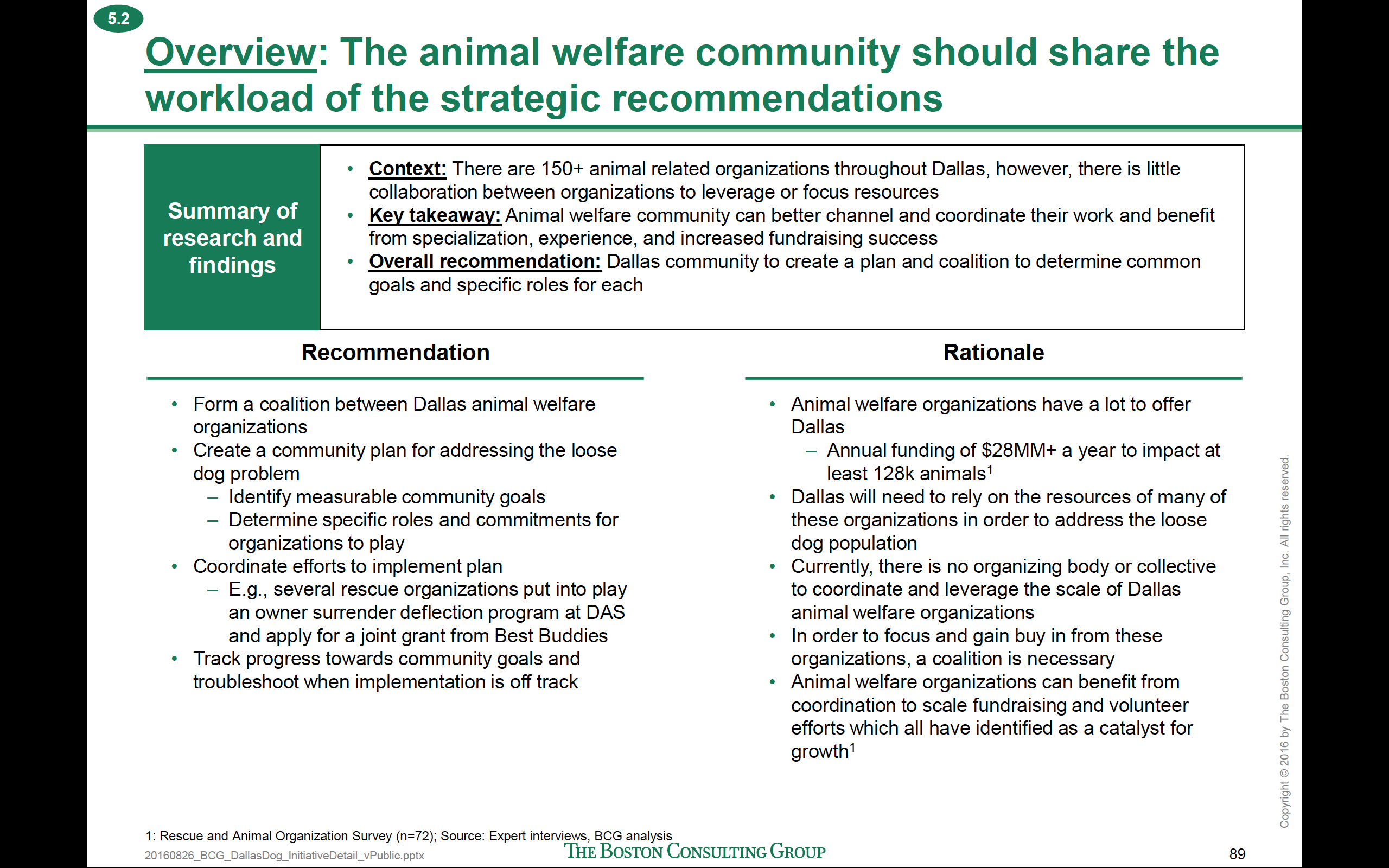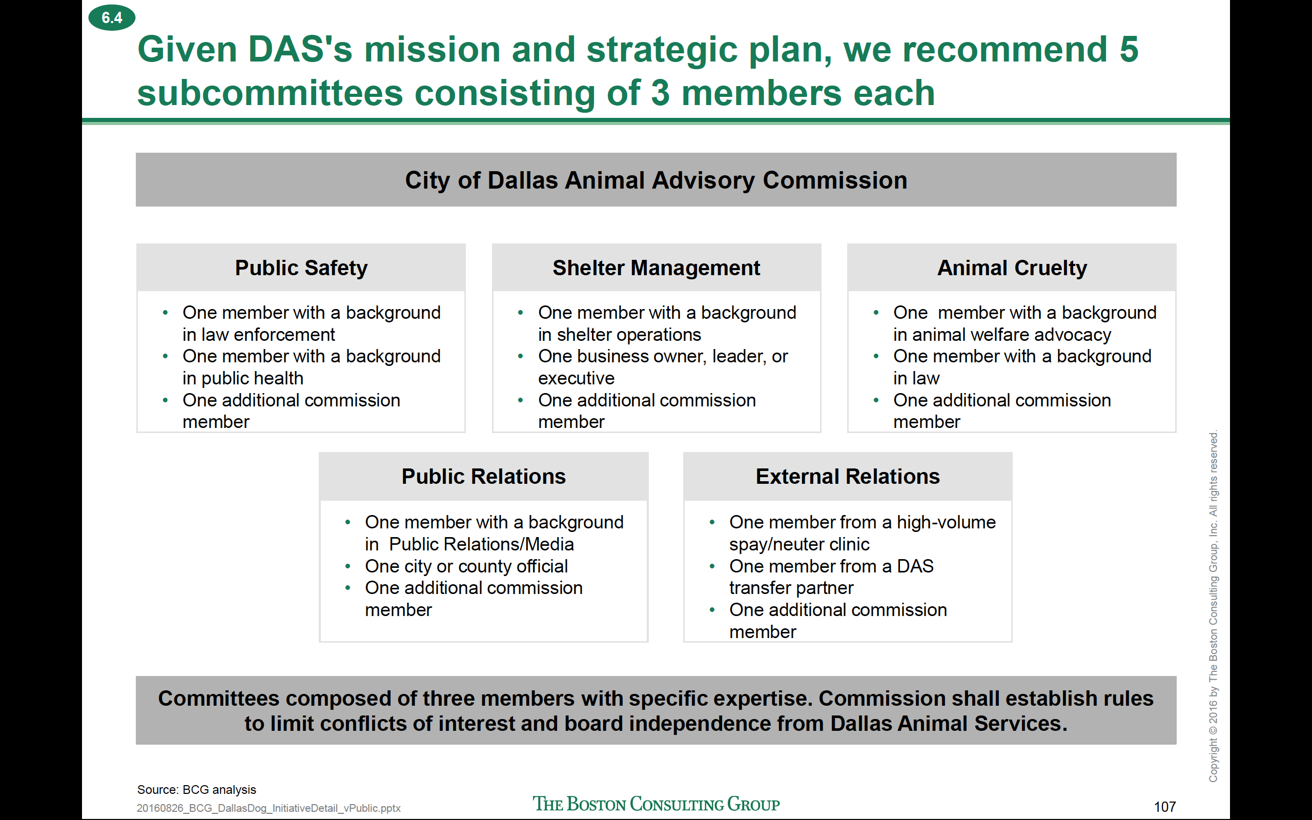Is the City going to wash their hands of any responsibility to this portion of BCG’s recommendation and blame the overall failure to turn off the “faucet of supply” on the non-profits’ failure to collaborate and fundraise? Additionally, it looks as thought the City is going to punt neglect and abuse investigation for the entire City of Dallas to the SPCA – to fund and investigate. It would appear on the surface that the safety and quality of life of citizens of the southern sector lies in the hands of non- profits. How can that be? Do the non-profits know that?